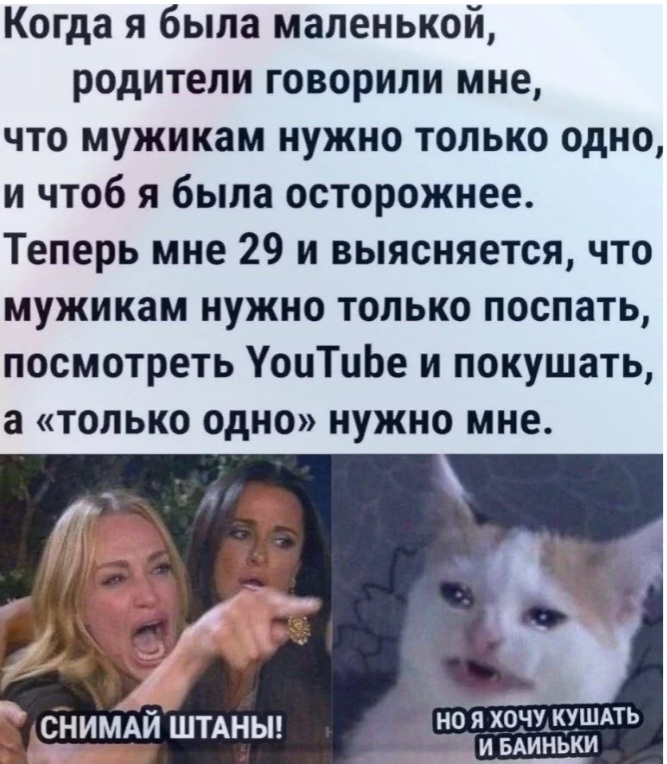 Исходные данные: четверг, первый день последнего месяца зимы, кашляющий мужчина с осипшим голосом варит суп, лечится "Архангельской" в количестве 100 грамм с маринованными огурчиками из "Ленты" за ужин, варит суп, и читает книжку))) Ну и вот возникло непреодолимое желание написать именно такую тему))) Можете меня ругать, судить, или обсуждать тему - это будет Ваш выбор. Итак, начнём. Все женщины жалуются что мужчины от них хотят секса, притом порой на сексе всё и заканчив