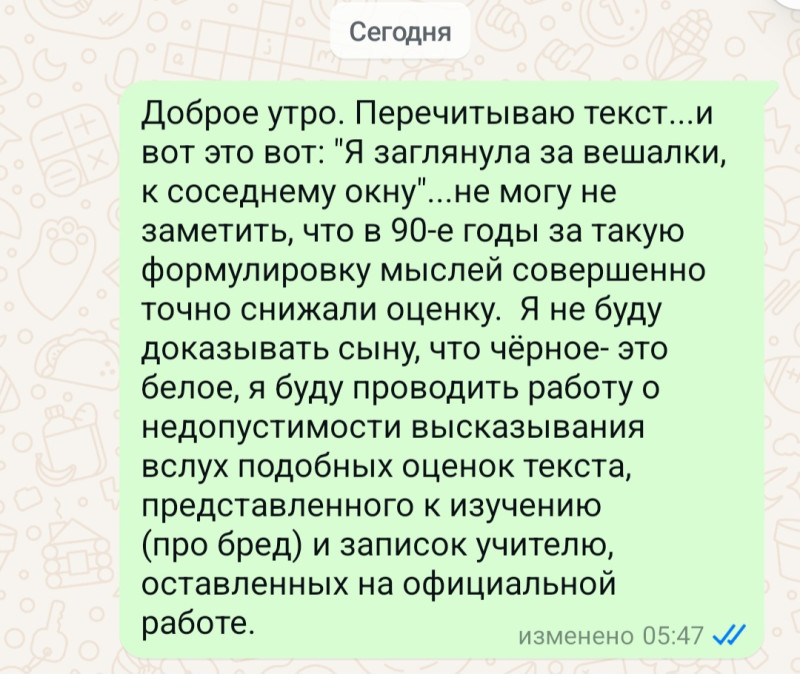 Учитель, кстати, не прокомментировала моё мнение, хоть и прочитала сообщение: