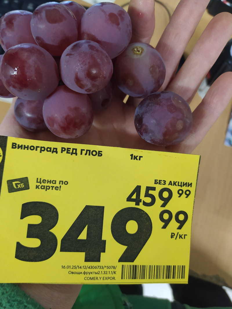 Сейчас была в пятёрочке, такого винограда не видела, обычный кигмиш зелёный по 400+, зато купила отличные яблоки, семеренко, свежие вкусные