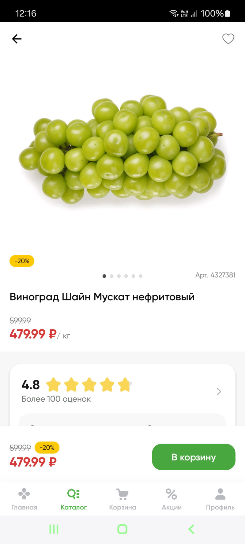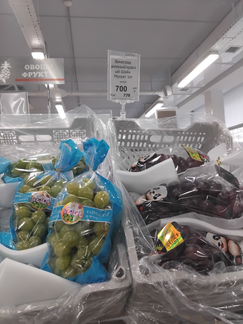 Привет) Сейчас была в пятёрочке, такого винограда не видела, обычный кигмиш зелёный по 400+, зато купила отличные яблоки, семеренко, свежие вкусные