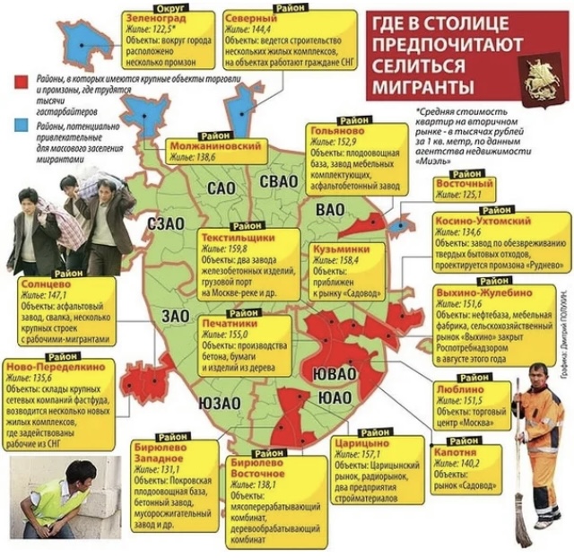 Ужас ужасный, но география растёт, кроме привычных слуху районов список неблагополучных дополнили новые, коих с десяток. В последних версиях мигранты из бывших теплых союзных республик заселяют вот эти районы: