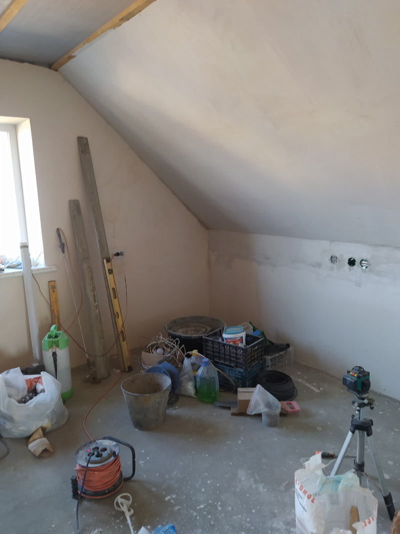 Финишной штукатуркой осталось пройти стены. И судя по цене, от 2000(!) за один рулон обоев, тоже склоняюсь к покраске.