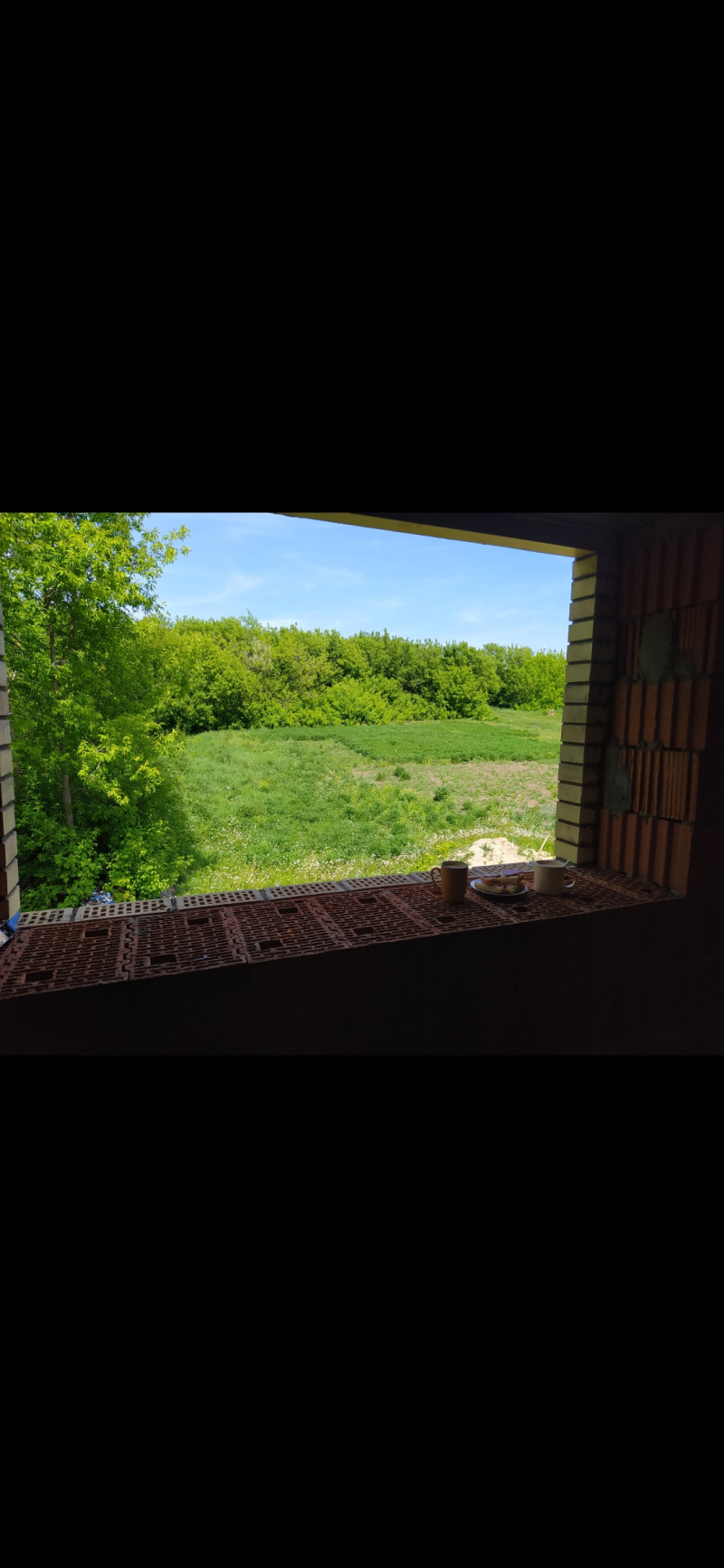 Вот, нашла фото 2-годичной давности, ещё окон не было. Там вид за окном получше всяких фотообоев))