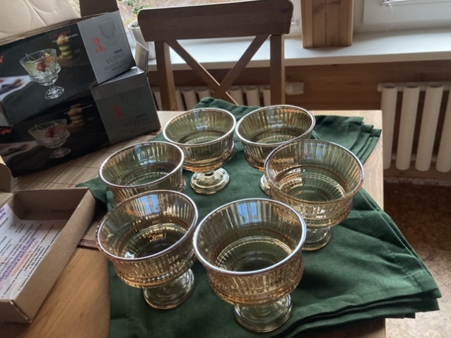 И теперь мы стали богаче на 6 креманок вместо 3, дюжину салфеток, 2 наволочки и 2 подушки, которые и без них на диване нашем родными выглядят… всего 22 предмета - моё любимое число!!!