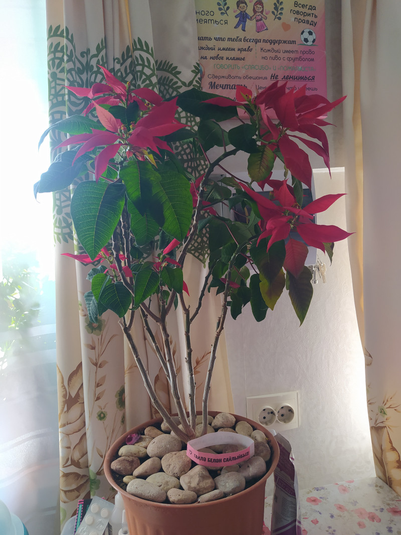 Девочки и мальчики, у кого пуансетия есть? Что с ней делать? Читала, что она в начале весны на покой идёт, её обрезать нужно. Моя в прошлом году не ушла. Целое лето на улице росла. Снизу голая, зато нарядная biggrin_rt_40.png Вот уже второй год пошел ей. Как на покой отправить? Или просто летом обрезать по самые яйца?