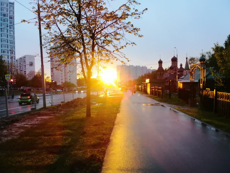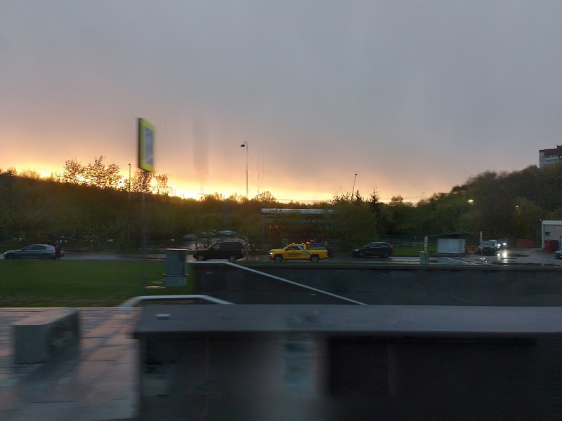 Сегодня днём было дождливо и ветренно. Но тепло, +18.