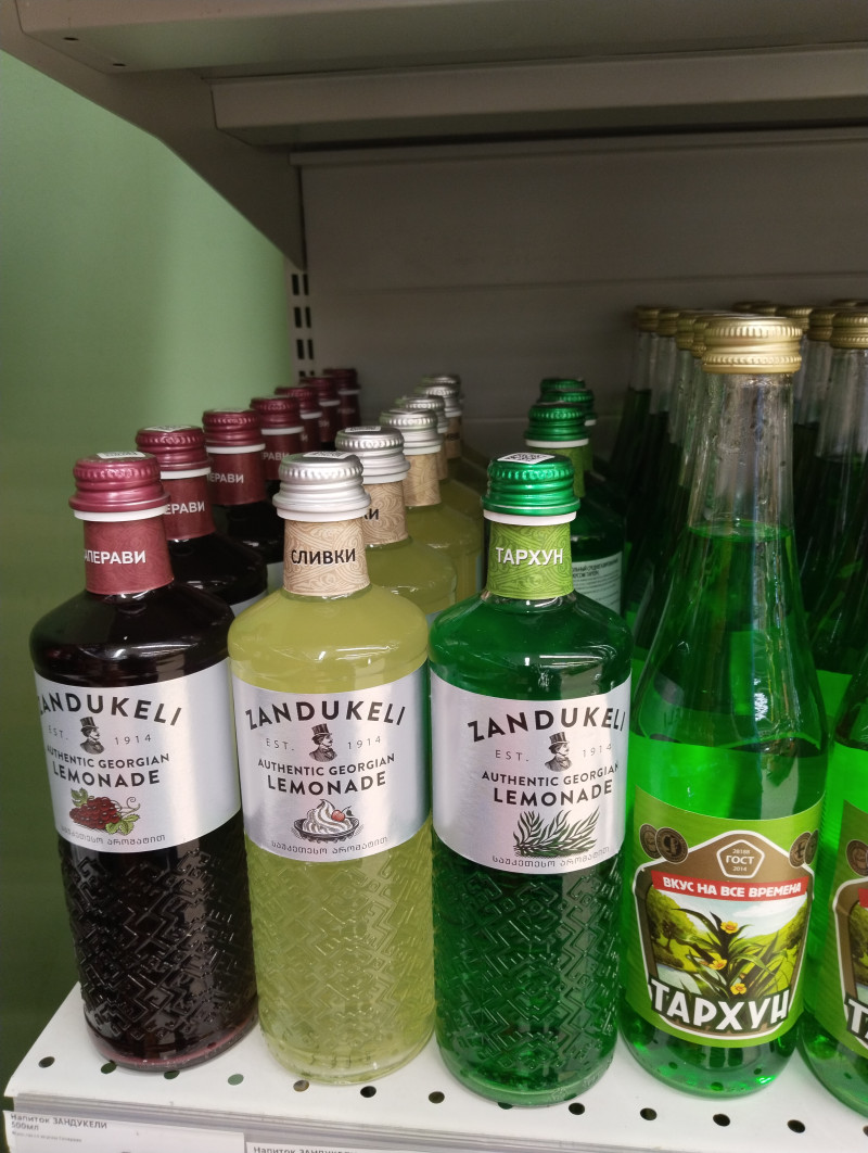 Все химоза. Натуральная только вода из под крана и то с хлоркой. Почитайте состав нашего тархуна))Тут состав практически натуральный. Лимонная кислота,красители. Никаких "синих","оранжевых")Я вообще хотел тархун. После прочтения передумал))