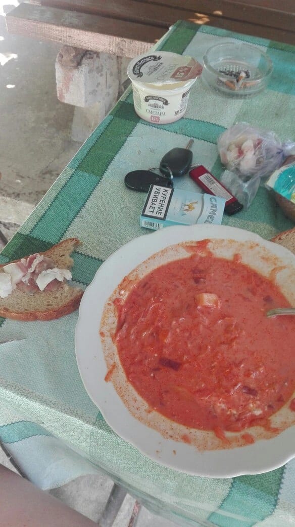 Я кусала, у меня борщ без мяса, я его с салом ем