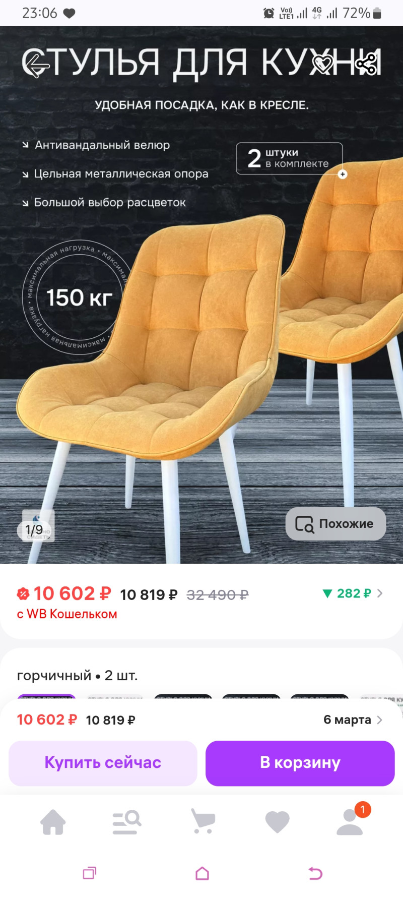 Интересно, вот сегодня получила стулья на ВБ, сама дотащила их, сама собрала, сама посидела, самодостаточна ли я 12 кг весили, однако, но классные