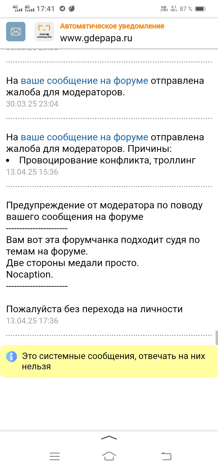 Может и так))) Бан просто готовится. Осталось 1 предупреждение. 2 уже было за одно и то же. Нам, рецидивистам, не привыкать)))