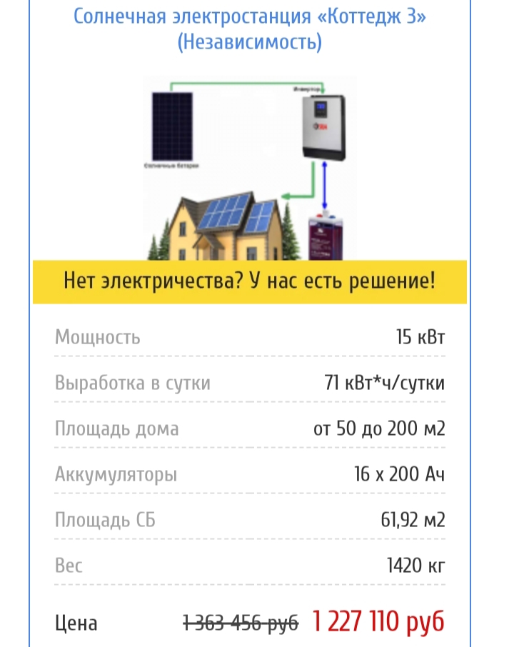 Во вторых цены на солнечные электростанции везде одинаковые.