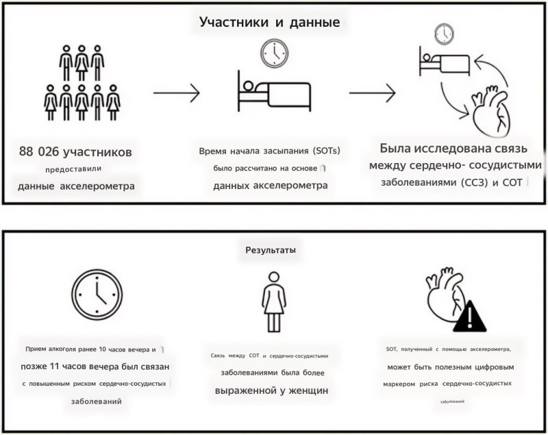 ????Нерегулярный график сна опасен. Каждый дополнительный час разброса во времени засыпания увеличивает вероятность сердечно-сосудистых заболеваний на 4%;
