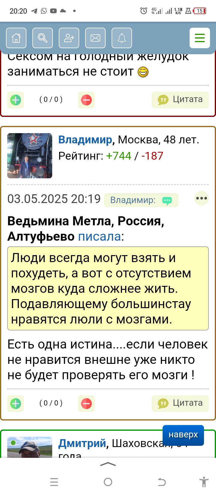 Люди всегда могут взять и похудеть, а вот с отсутствием мозгов куда сложнее жить. Подавляющему большинстау нравятся люли с мозгами.