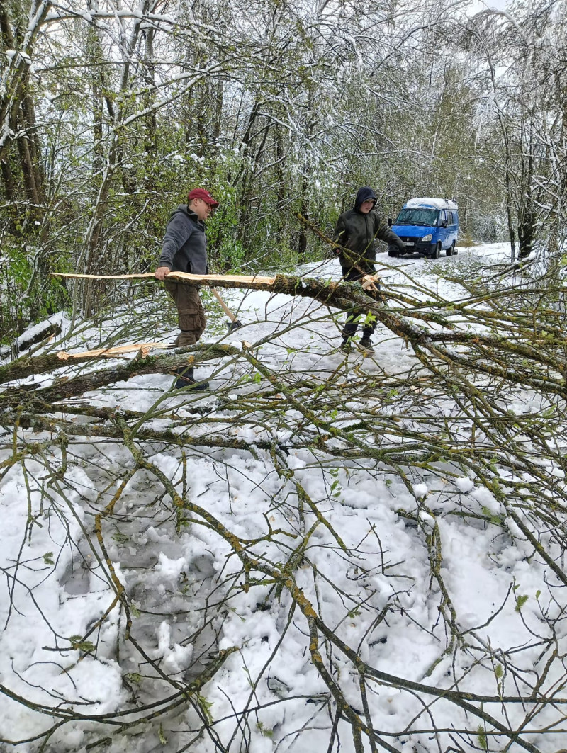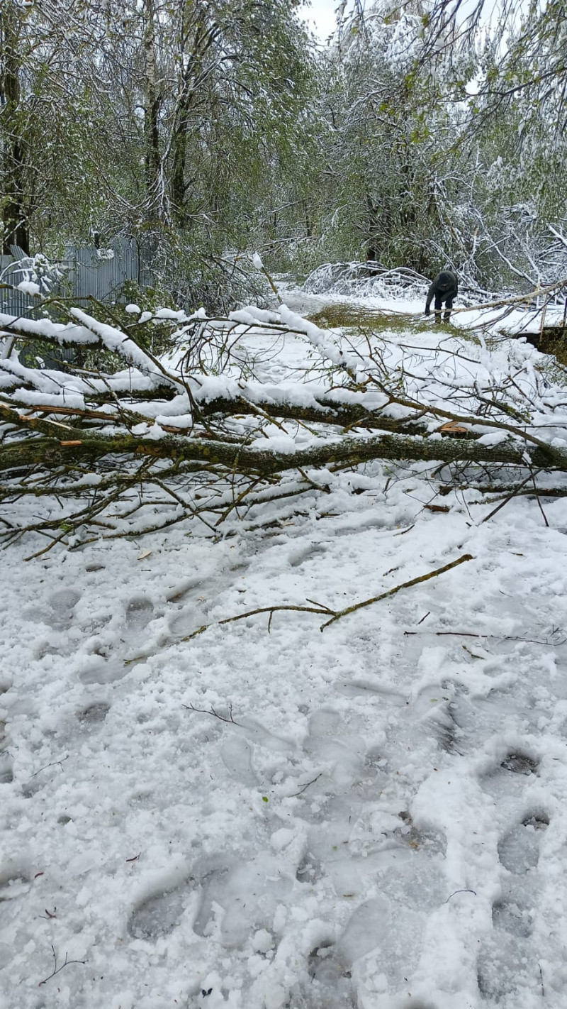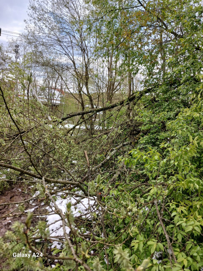 Каждый 3-4 метра поваленное дерево.И все на проводах повисли
