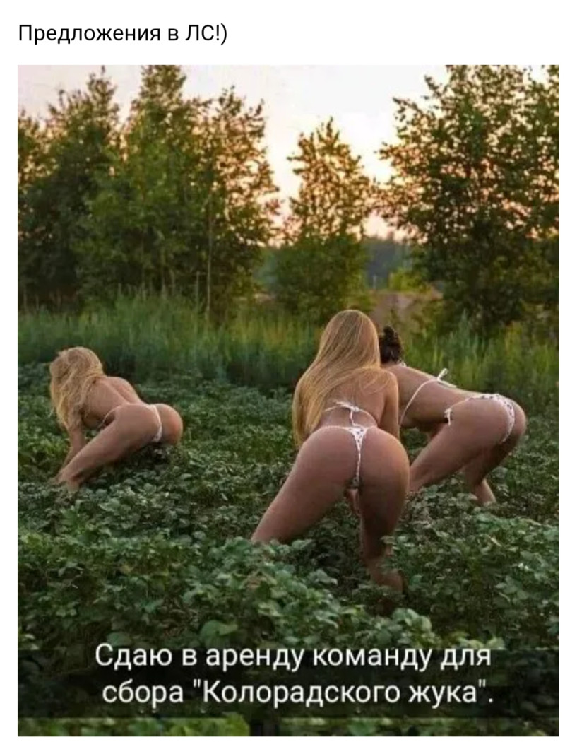 План работ: 20 кустов помидор. 12 кустов огурцов. 4 куста кабачков. Яблони, груши, ягоды. Клумбы. 4 рядка картошки. Надо разбирать старую металлическую теплицу. Уборка территории. Покос триммером. Детский труд приветствуется. По условиям - купаться пляж 7 минут пешком. Требуются отчаянные люди. Работа не оплачивается. Покормим, ок