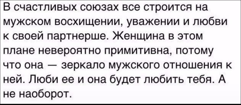 Попалось тут, вдогонку... Вот полностью согласна, а вы? 🌿Мужчина должен так покорить женщину, чтобы она была согласна стать для него всем. И так же, любя его, была готова умереть – и за него, и за его дело, и за его детей, и так далее. Но это он обязан ее завоевать. Если же мужчина рассуждает, что ему женщина изначально что-то должна, это вообще не мужчина, а какой-то другой фрукт. Может быть, киви? ☦️ Прот. Дмитрий Смирнов 🌺Женщина всегда отзывчива