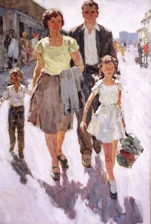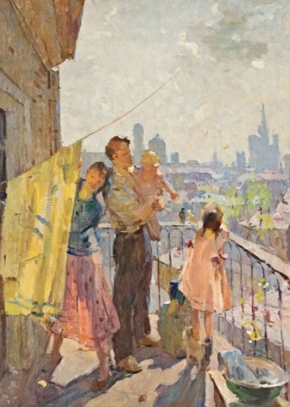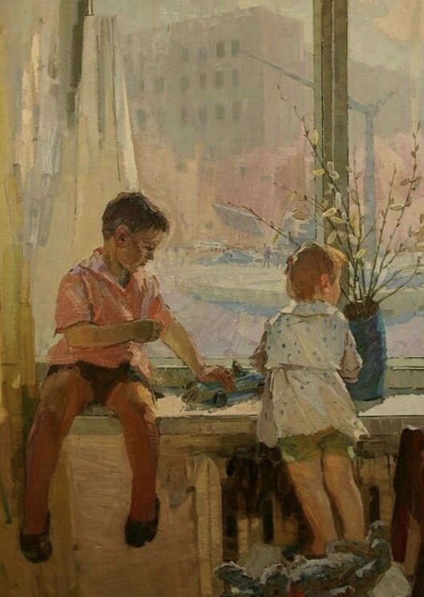 Мне тепло от картин, на которых сюжеты моего детства проглядывают и тема дороги, переезда на новое место, новоселья самая для меня трогательная…)
