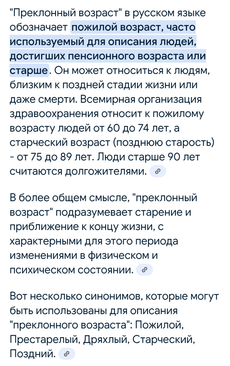 По следам анонимной темы По вашему преклонный возрост это какой?