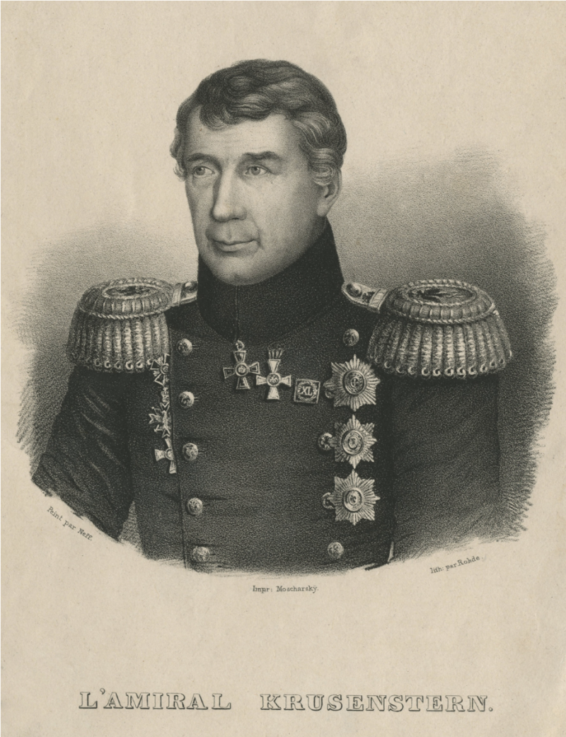 При оформлении Крузенштерна в корпус вместо Адама Иоганна его записали Иваном Фёдоровичем без всякого спроса и согласия на то отца — Иоганна Фридриха. Так в России всегда поступали с немецкими и другими иностранными именами. Например, Фабиан-Готлиб-Беньямин стал Фаддеем Фаддеевичем Беллинсгаузеном, Герман Людвиг стал Ермолаем Ермолаевичем Левенштерном и несть тому числа. Но более всего восхищает русское имя француза Жана Батиста Прево де Санчак, меркиза де Траверсе, который в России стал Иваном Ивановичем (!) Траверсе".