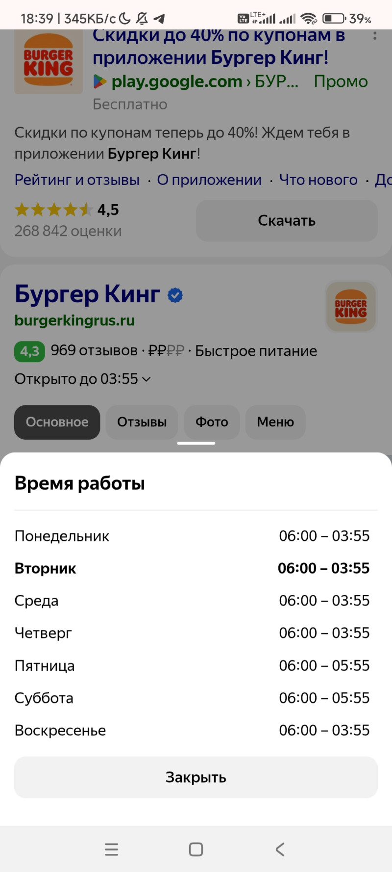 Могу в 7 утра. Бургер открыт с 6 утра вообще.