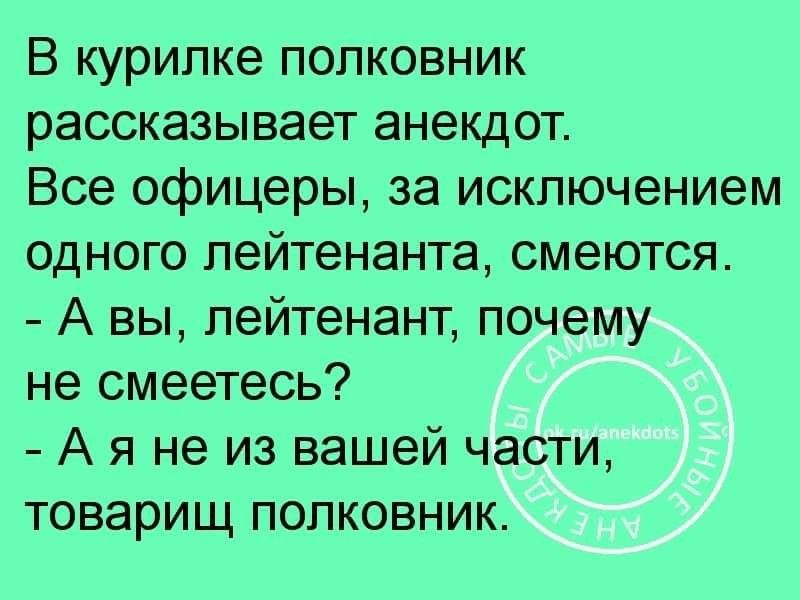 – Вероника, сколько раз объяснять? Я – не мальчик! И не надо ставить передо мной сто грамм… тем более на пульт управления огнем! Это называется «сто грамм перед боем»! Старинный русский военный обычай!