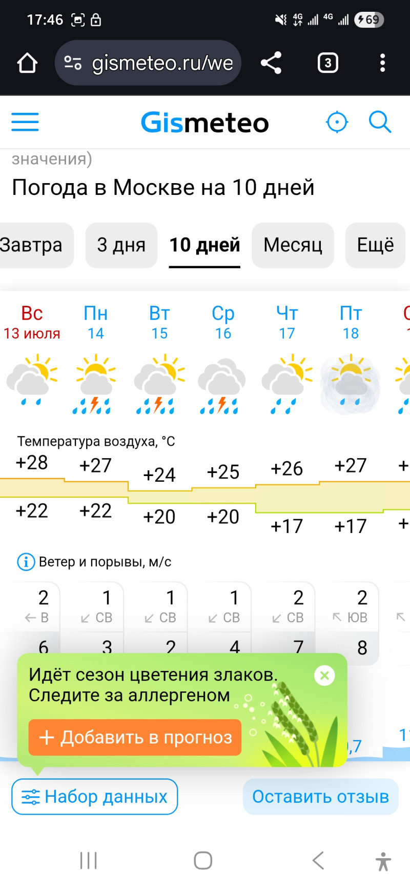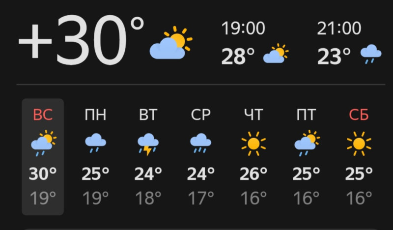 Сейчас посмотрела, дожди обещают почти каждый день на предстоящей неделе, но по градусам прогноз тот же, какой был