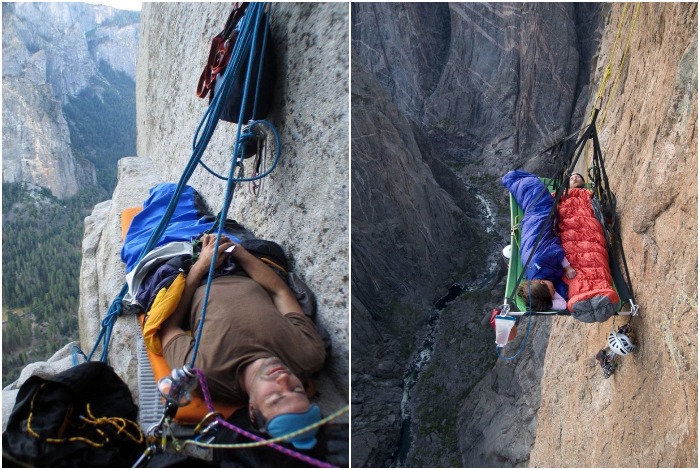 ...как альпинисты обустраивают ночлег на вертикальных скалах и неприступных вершинах гор.