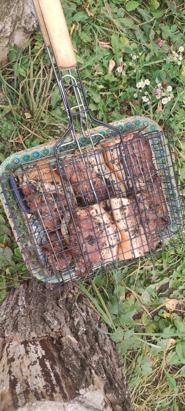 Жаренные пельмени на садже. А ещё делаем на решётке (замороженные пельмени, смешать майонез и кетчуп, добавить специй)