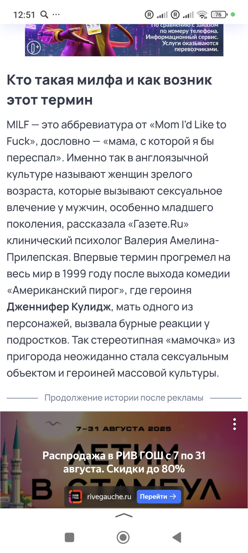 Ты Вы, котик , сам Милфан тогда ))милфы это для подростков ))) вы уже давно не подросток .