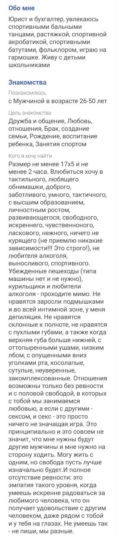 такие анкеты я бы стороной обходила по кривой дуге, коли была бы мужчиной)