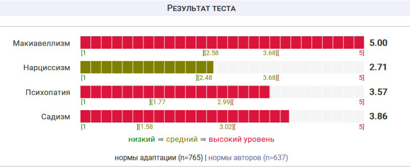 Довольно высокое (наивысшее среди шкал) по шкале тщеславия и ноль(!) по шкале самодостаточности...