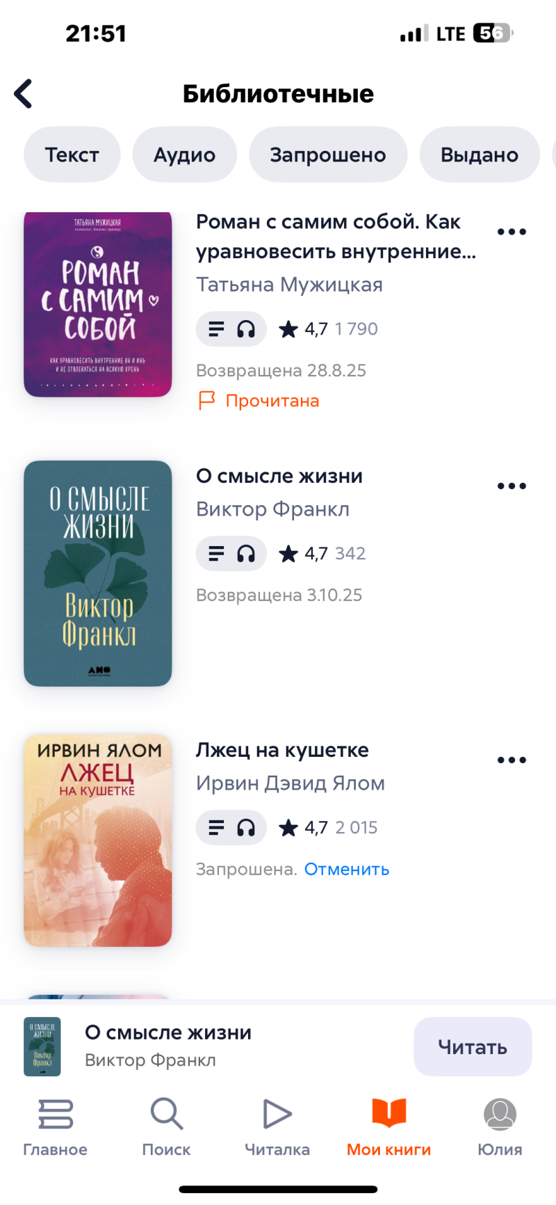 В Литресе ничего искать не нужно. Все лежит, так сказать, на полках на своих местах 😀. Набрал название, посмотрел статус книги, заказал и получил либо сразу, либо попозже. Если не успел прочитать, то можно написать и продлить. Это все бесплатно.