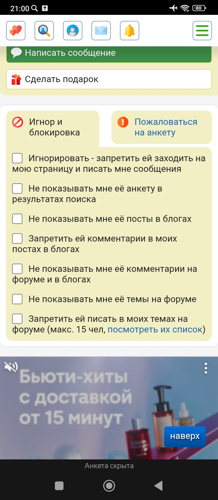 Позвольте задать Вам вопрос, который волнует меня весь день, почему запретили мне писать у Вас комментах в блоге, хотя я там вообще ничего никому не пишу, ну может только на посты Макса в его темах про гороскоп, а то любопытство распирает 🤔🤣