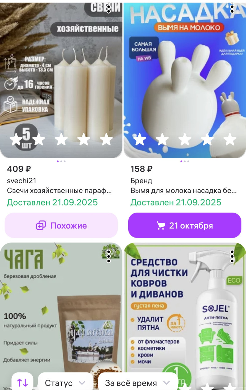 Никогда ещё ничего не покупала ни на озоне ни на wb ., все что мне надо нахожу в магазинах. Не люблю ненужные покупки. И обожаю именно покупать все в магазинах. Всегда знаю что мне надо и хочу и именно это нахожу и знаю где искать)