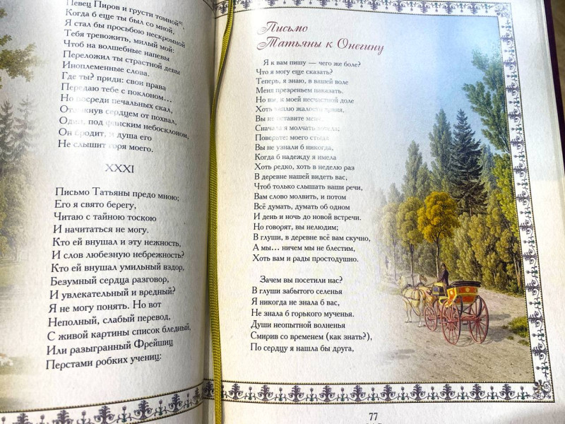 Но много лет назад мне подарили красивую книгу Е Онегин. В бархатной обложке и все такое. Это подтолкнуло к «перечитать» , очень приятно в руках её держать. И оказалось роман этот раз в 10 лет совсем иначе воспринимается- дважды проверяла. Пора еще раз. Достану положу у кровати