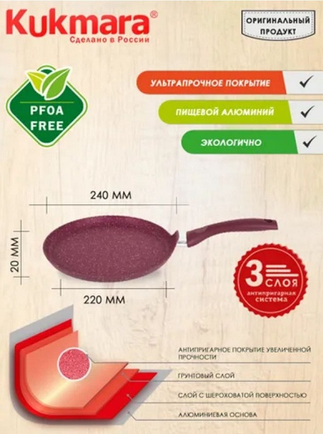 Вторая что-то по типу Калиты или в этом роде. Отечественная. Какая-то Ярославская сковорода. Ручка тоже отстегивается. Но покрытие хорошее. Их вообще 2. Большая на 26 см и на 20 .