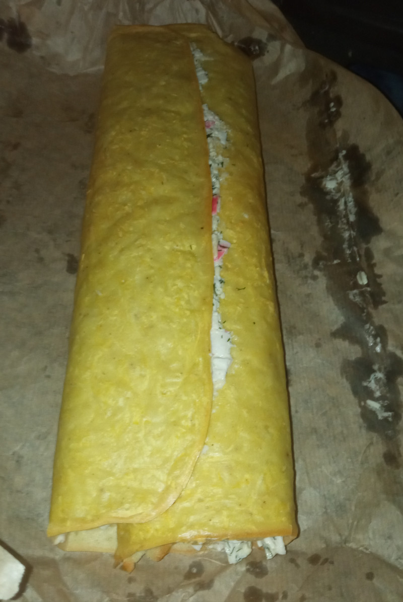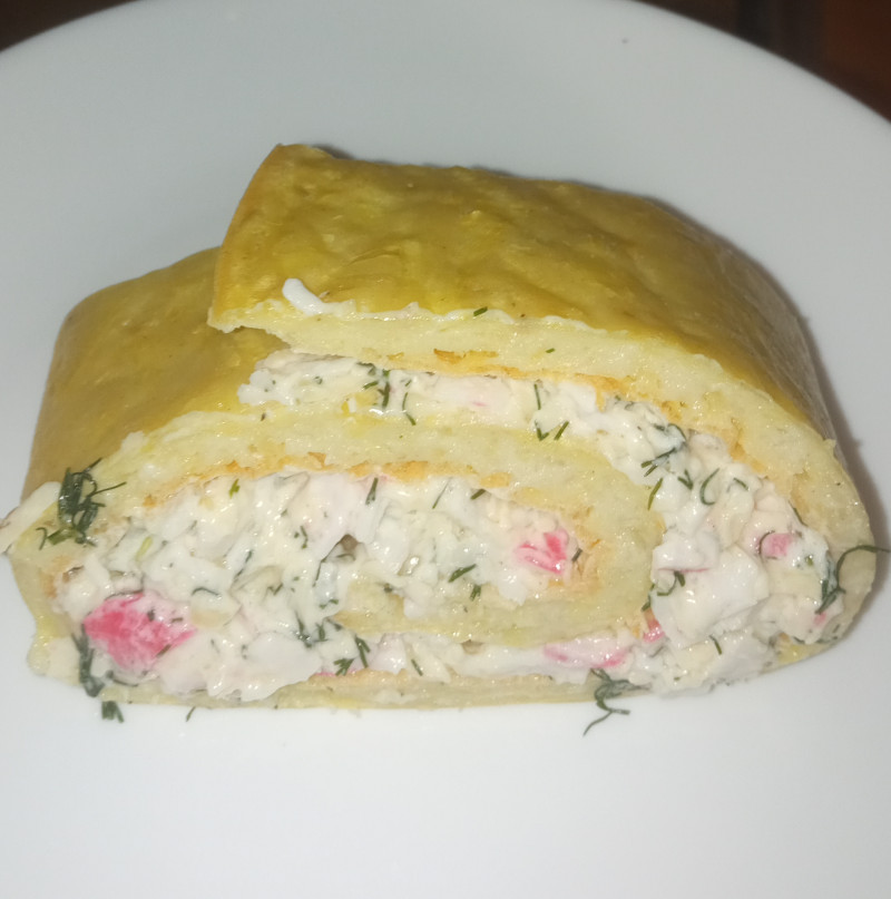 А я прошлой зимой придумала из кабачков грубых, которые на зиму специально переращиваю летом и осенью сделать рулет из кабачка , сыра и крабовых палочек с замороженным укропом немного и чесночком. Получилось очень вкусно👍