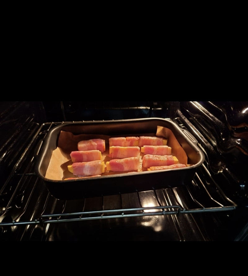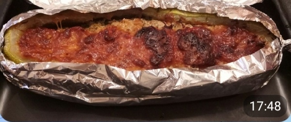 Я лодочками запекаю. И в кружочках по разному по составу ингридиентов.