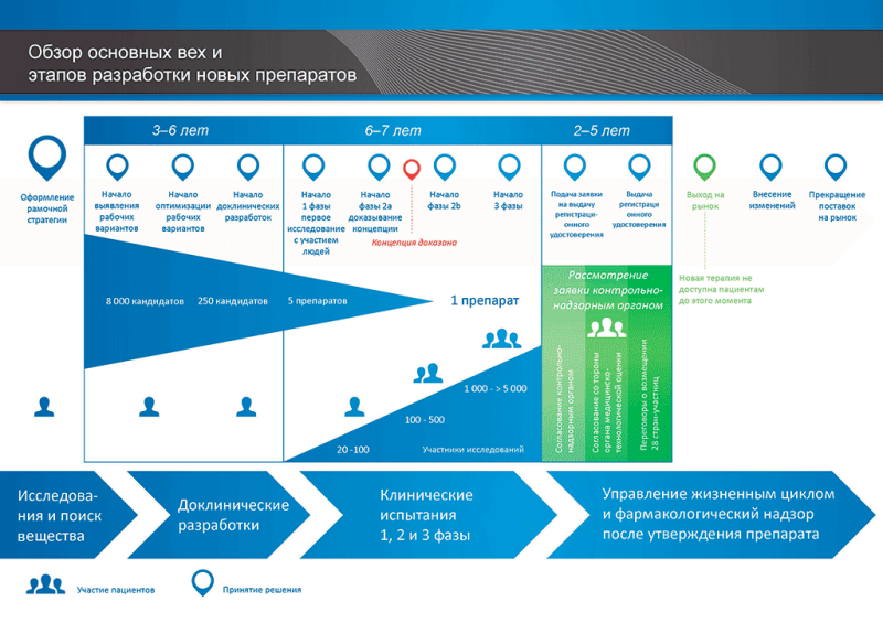 Причем после регистрации и вывода на рынок наблюдение и изучение не заканчивается. После вывода на рынок, собирают информацию о побочных эффекта и реакциях, это может привести к запрету.