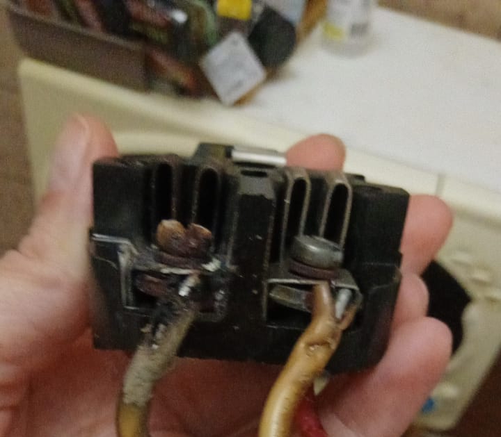Ну вот у Вас слева контакт хреновый, поэтому и начал подгорать и пахнуть.