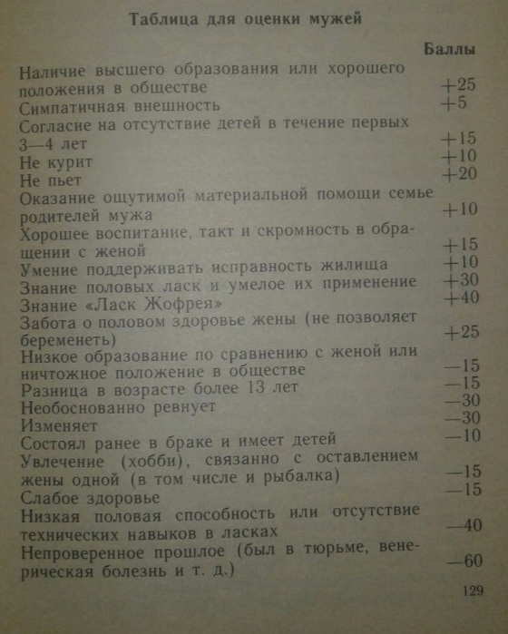 Что с этим списком станетеделать, если, например, повстречаете того, кто на 3/4 соответствует и на 1/4 отличается от представления об идеале?
