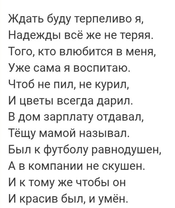 Забыла добавить, не женатый и свободный от отношений, а то ... Эх 🤣🤣🤣