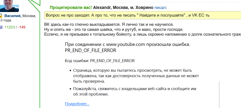 Почему ютуб не открывается? У меня прекрасно всё работает. 😉