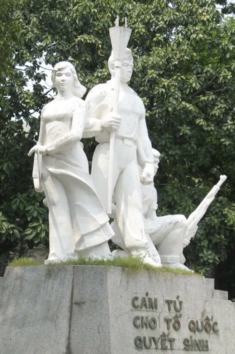 Скульптуры изображают бойцов с трофейной японской "шестовой миной мгновенного действия Ni05, made in Japan". Эти мины достались вьетнамцам со складов капитулировавшей японской армии, которые изобрели их для своих камикадзе. Во время прогоняния французов из Индокитая вьетнамцы от безвыходности взялись и за эти мины.