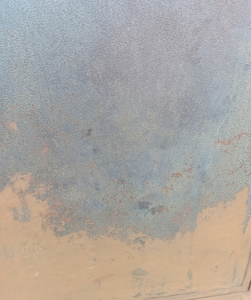 Дверь в гараж по какой- то причине стала облазить. Сын вчера решил её зашкурить и самостоятельно покрасить. Результат на фото...