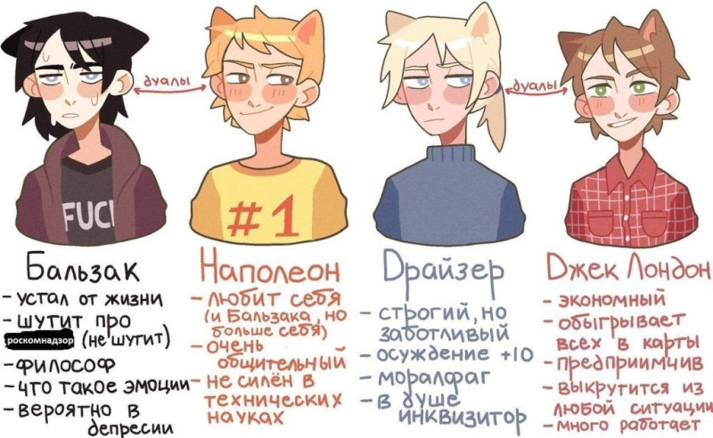 Сейчас скину карикатуры на наши типажи, чтобы стало понятным насколько мы разные практически во всем.