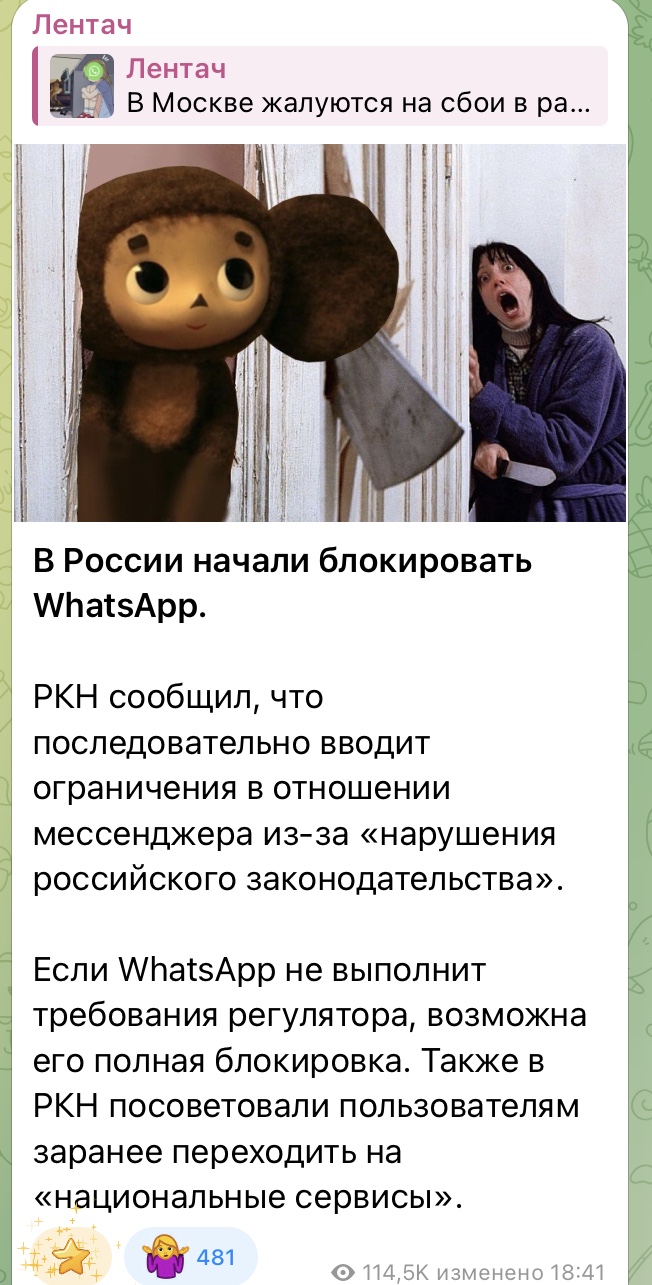 Роскомнадзор сообщил о частичной блокировке WhatsApp* за нарушение российского законодательства. Если мессенджер не начнёт соблюдать требования, ограничение станет полным.