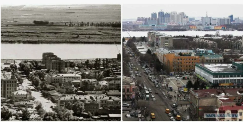 сравните два города через Амур Благовещенск, через реку - г. Хэйхэ