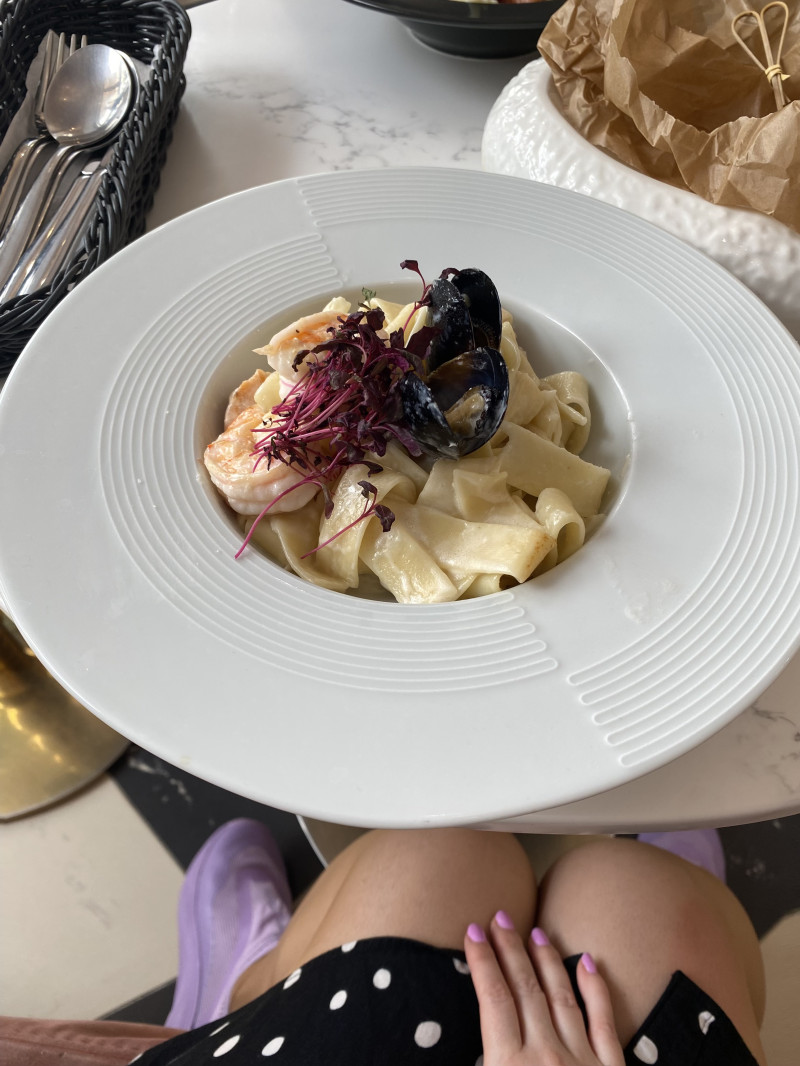 А тут наоборот- большая тарелка с маленьким количеством еды