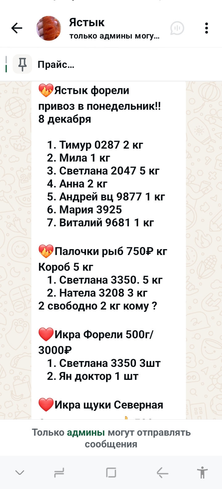 В москве в вотцап есть группы Совместных закупок, рыба, икра... Из Карелии много сейчас привозят в Москву, там её разводят в водоёмах на продажу. Приезжаешь и выкупаешь свой свежий и качественный заказанный товар, цена пониже магазинной.